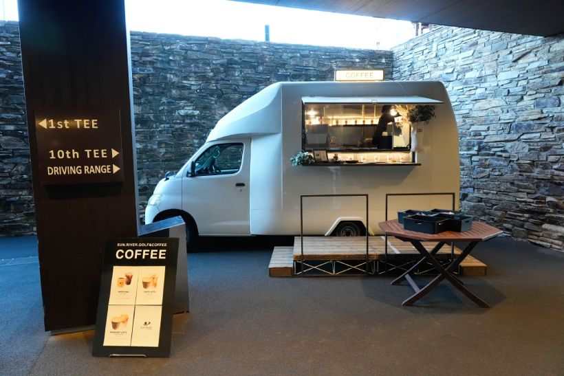 もうお馴染みとも言える「SUN.RIVER.GOLF&COFEE」は、参加者全員と言っていいほどほとんどのゲストがラウンド前や合間に立ち寄っており、もちろん私もホットラテを注文。