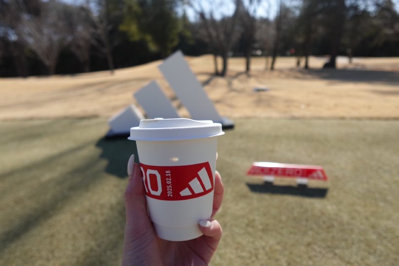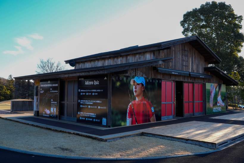 ADIZERO ZG 25の発売を記念したローンチパーティの会場は、名門・イーグルポイントゴルフクラブ(茨城県)。着いた瞬間から目を惹くアディゼロ一色に染まったゴルフ場のエントランス。入ってもなお続く、アディゼロ祭りは、もちろんコース内にも続いていた。