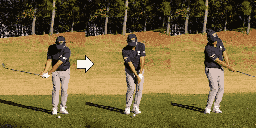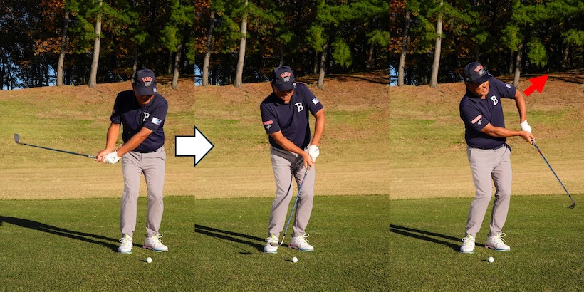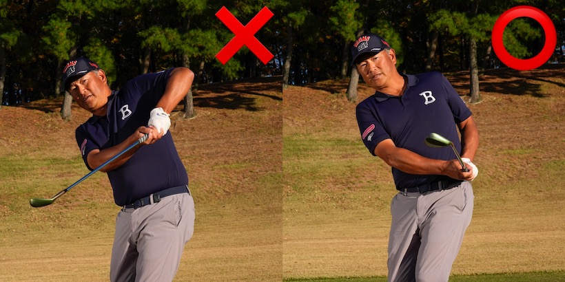 ただ、アプローチの場合はシチュエーションによって弱い球を打つことも必要になります。体幹を使って左ヒジが抜けないように打つことが基本ですが、状況によっては左ヒジを抜く打ち方が武器になることもあります。要はどう打ったらどんな球が出るのかを把握しておくこと。柔軟に考えることでアプローチの引き出しが増えていきます。