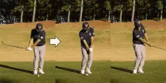 ヘッドの重さを逃がさないためにはテークバックから体幹を動かすイメージが有効です。テークバックではクラブのローテーションは入れなくてもいい。手を使うイメージを排除して打つと、力感はなくてもヘッドの重さがボールに乗ってちゃんと飛んでくれる。基本、出球が低くスピン量も一定になるので距離感が合いやすくなります。