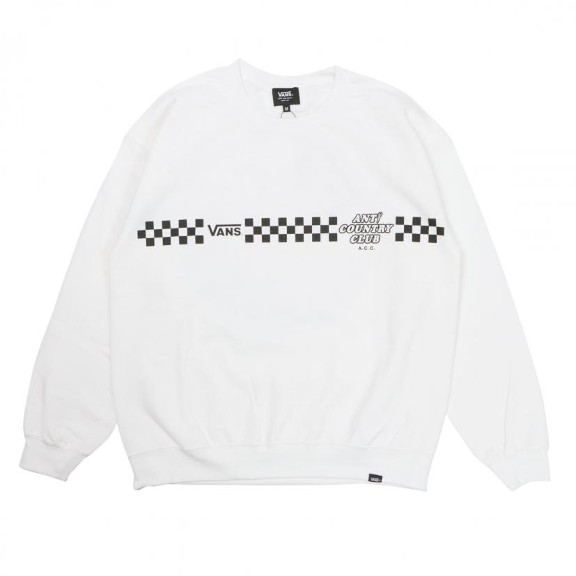 アパレルでは、VANSロゴやチェッカーボード柄と、ANTi COUNTRY CLUB TOKYOのロゴを組み合わせたグラフィックを、Tシャツとスウェットにプリント。