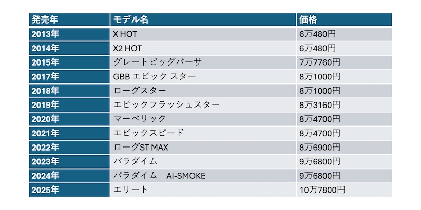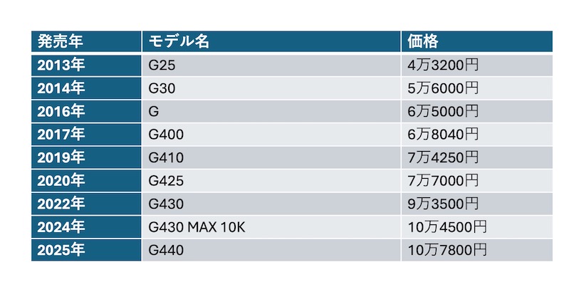 ピン、テーラーメイド、キャロウェイ、ゼクシオの価格推移(2013年〜2025年)