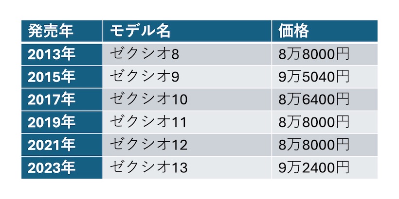 12、13年前、人気ドライバーで最も高かったのは『ゼクシオ』だった。2013年12月に発売された『ゼクシオ8』は8万8000円。当時はテーラーメイドの『SLDR』が6万8250円で、キャロウェイの『X HOT』はオープンプライスながら約6万円。ピンの『G25』もオープン価格だったが販売店では4万3000円前後で売られていた。当時のピンは『ゼクシオ』の半額以下。テーラーメイドやキャロウェイも『ゼクシオ』と比較すると約2万円も安かった。