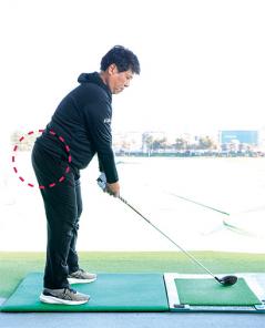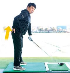 ドライバーがよく飛ぶ人に共通していることは、誰が見ても飛びそうな構えをしていることだと、辻村明志コーチは言う。下半身に安定感が大事なわけだが、そのためにはお尻が大きなポイントになるという。