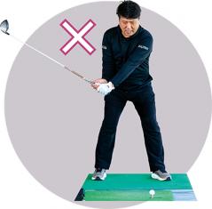 「飛ばない人たちはテークバックの段階から力が入っています」とは辻村明志コーチの指摘だ。その傾向がある人は腕や手を使わず、カラダの回転でクラブを上げることを心がけよう。
