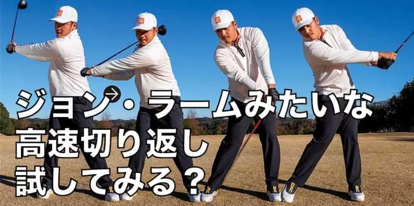 スペインの飛ばし屋、ジョン・ラームといえばゴルフファンならご存知の方も多いかと思います。カラダは大きいですが、低くてコンパクトなトップから高速で切り返すのがラームの特徴です。このスイングを参考にしましょう。