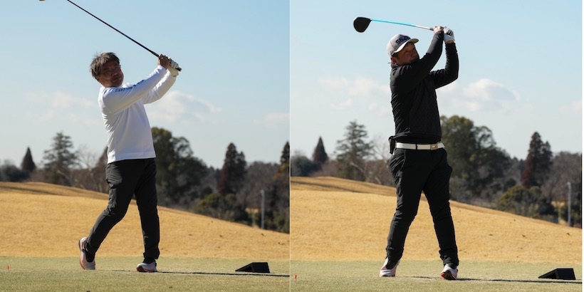 『軽さ、グリップ力、安定感に驚きましたが、一番衝撃的だったのは歩きやすさです。ソールのカーボンプレートが効いているのか、歩き出すときに足がスッと前に出ます。18ホールずっと歩きプレーでも疲れなさそう。日常生活でもずっと履いていたい! そんな気にさせる快適かつ“快足なゴルフシューズ”でした』(T島氏・写真左)