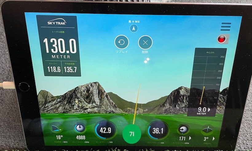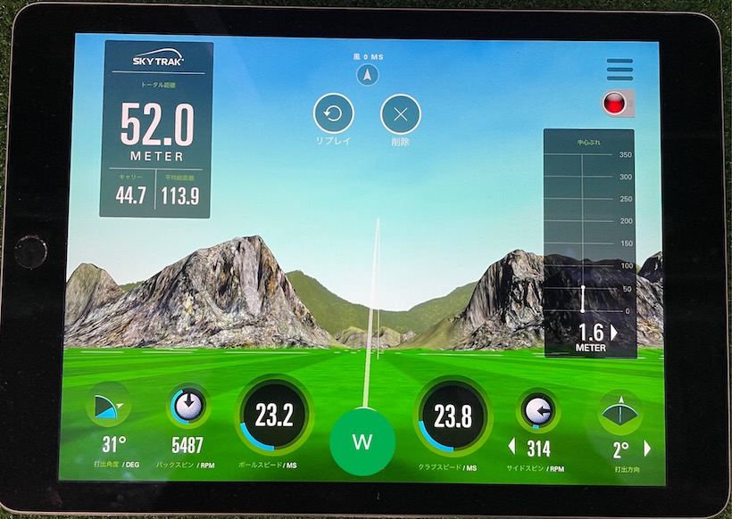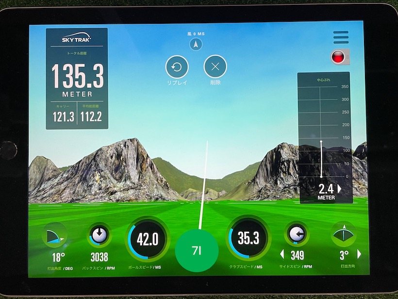 最後にウェッジを計測。50ヤードを目安に打ってもらったのだが、ドライバーとアイアンの時とは変わって大きな差が生じた。試打クラブのロフトは56度。
