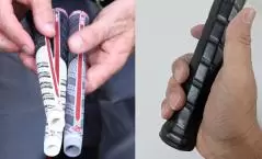 テニスやバドミントンで断面が丸いグリップを使いますか? と問われれば、答えは「ノー」だろう。飛ばしたいと同時にショットの方向性を高めたいと言うのは、すべてのアマチュアゴルファー共通の思いだろう。だとすれば、バックライン有りのグリップを使わない手はないはず。カチャカチャ付きのクラブでも、自分に最適なポジションを決めてしまえば、それに合わせてバックライン有りのグリップに交換すればOKだ、実際にプロはそういう使い方をしている。