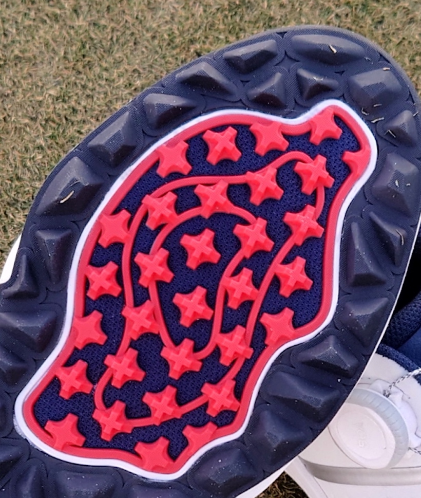 実際に、グリップ力が強いシューズは、そうではないシューズと比較すると数ヤードの飛距離差があるのは体験として知っていたが、ゴルフ歴約半世紀で、こんなに飛ぶのは初めての経験だ。