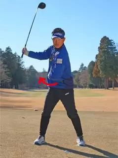 ドライバーの飛距離を出すには、バックスイングの助走を大きくすることが第一条件です。腕力があまりない人でもクラブヘッドで大きな円弧を描くイメージでカラダの捻転を深くすれば、飛ばしのパワーを存分に蓄えられます。
