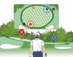 アプローチショットを打つ、その前に! グリーンの一番高い場所と一番低い場所はどこかを見て!