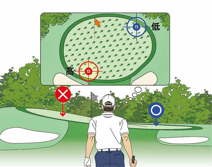 グリーンを外したときのアプローチもパットも上りのラインを残すことがスコアメイクの鉄則だ