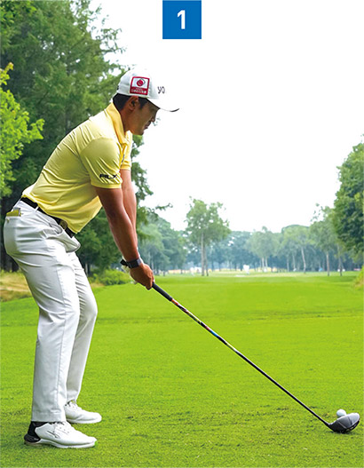 バックスイングをシャットに上げて、ダウンスイングでは前傾キープしながらフェースローテーションを抑える。それがドライバーショットを曲げない秘訣です。