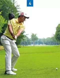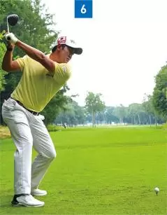 トップでは上半身も深く回っているが、下半身も少し回っているので捻転は100%にはなっていない。(写真06)