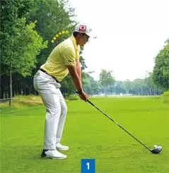 アドレスではヒザをほとんど曲げていない。重心をやや高めにキープして、体を回しやすくしている。