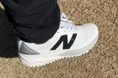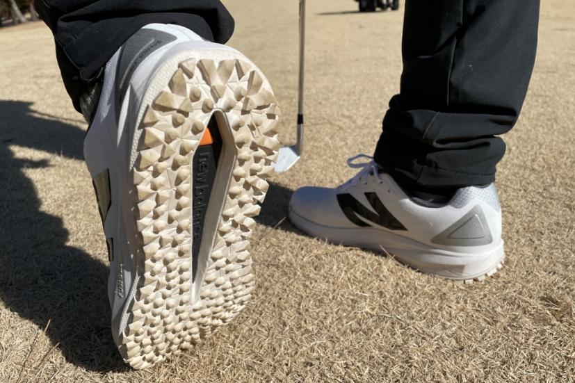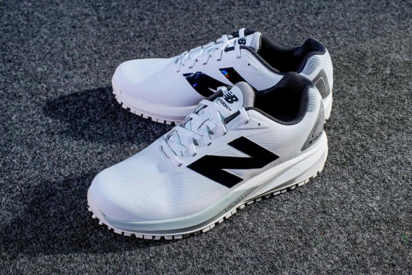 まずは見た目。このシューズはスパイクではなくスパイクレスシューズ。だから個人的に大好きな通称稲見萌寧モデル「FuelCell 3000」と比べても、デザインの面でよりシューズに近くなっている。ゴルフシューズでありながら、フロント部分がスニーカーの「991」に、ミッドソールが「990V6」に似ていて、かなりトレンドを押さえていると思うのは私だけだろうか……。
