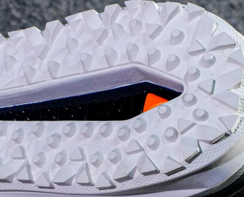 次に機能。ソールを見て気づくのはスタッド(突起)が2種類あるということ。足裏の周辺が角ばったもの。内側には丸いものになっている。角ばった「TRIANGLE STAD」と呼ばれるタイプのスタッドはかなり踏ん張りがききそうだ。
