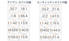比較データでは、UTの方がキャリーが出て止まることが分かる。ドライバーのヘッドスピードが40m/s以下だったら、5番アイアンよりもUTの方がやさしいということだ。とは言え、やっぱり5番アイアンが使いたいと言う場合は、選び方を工夫すればいいだろう。
