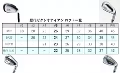 2000年発売の初代ゼクシオのロフトは5番で26度、7番で32度だった。当時を思い起こすとゼクシオは “やとしさ”よりも“飛ぶ”と言う評判で売れたように記憶している。ゼクシオ以前に“やさしさ”でヒットしたクラブに92年発売のミズノ「ノータス ST-57」というモデルがあった。資料が見当たらないので正確な数値は分からないけれど、7番で36度、5番で29度前後だったはずだ。
