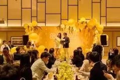 プレー終了後行われた表彰式では、全体的にイエローに装飾が施され、かなり華やか。ミモザのアルコールや、ローストビーフなどのテンションが上がるドリンクとフードが並び、参加者たちもワクワク。表彰式の景品の豪華さに会場がたびたびざわつきながら、女優・歌手と多方面で活躍しているすみれさん、歌手のビバリーさんなどのパフォーマンスも行われ、会場は大盛り上がりとなった。