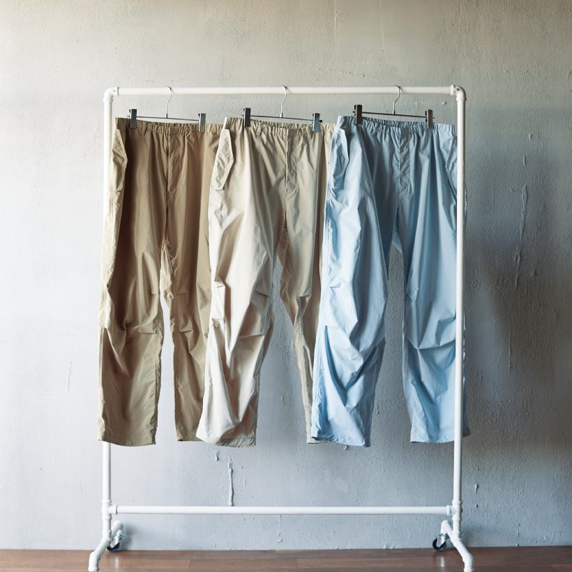 トレンド感のある太めのシルエットに、裾スピンドルやダーツによる構築的なデザイン、パッカリング縫製等、こだわりの詰まったディテールを施した特別感あるパンツ。ソフトで気持ちの良いパウダータッチを実現するタフタ素材を使用。