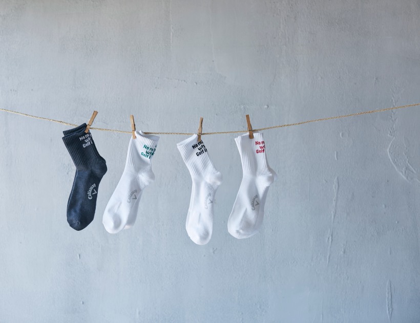 ”No matter what,Golf is Fun”「何があってもゴルフは楽しい」という文言を入れたショートソックス。抗菌防臭加工や、足裏パイルでクッション性のある快適性を高めた履き心地と踵がしっかり安定するサポート設計を採用。