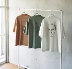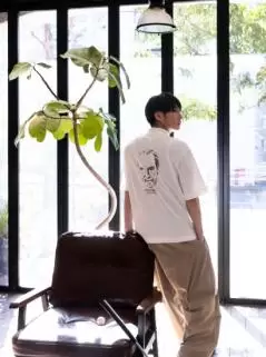前身頃はシンプルながらポケットやロゴ位置などディテールにこだわりを入れ、後身頃には大胆にキャロウェイの創設者であるイリー・キャロウェイの肖像を線画タッチで表現したアートワークをプリント。