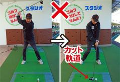 バックスイングではクラブがアウトサイドに上がってカラダの捻転が不足し、ダウンスイングでもアウトサイドから下りてきてカット軌道でボールをとらえてしまうことになります。