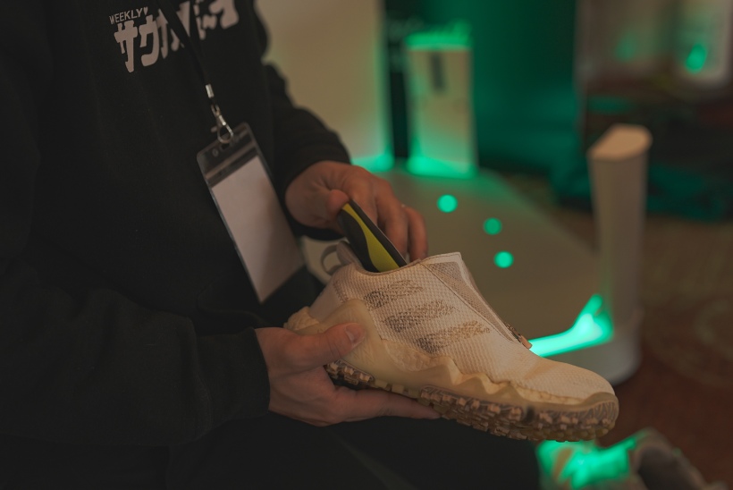 こちらのザムストブースでは、3Dスキャナを設置し足形計測を実施した。新商品のゴルフ向けインソールの効果などを実際に体感し、選手たちも興味津々だった。