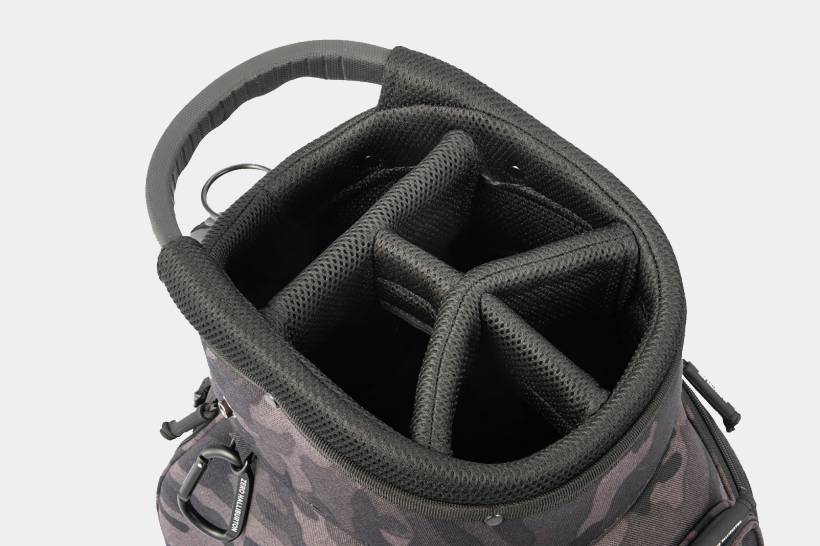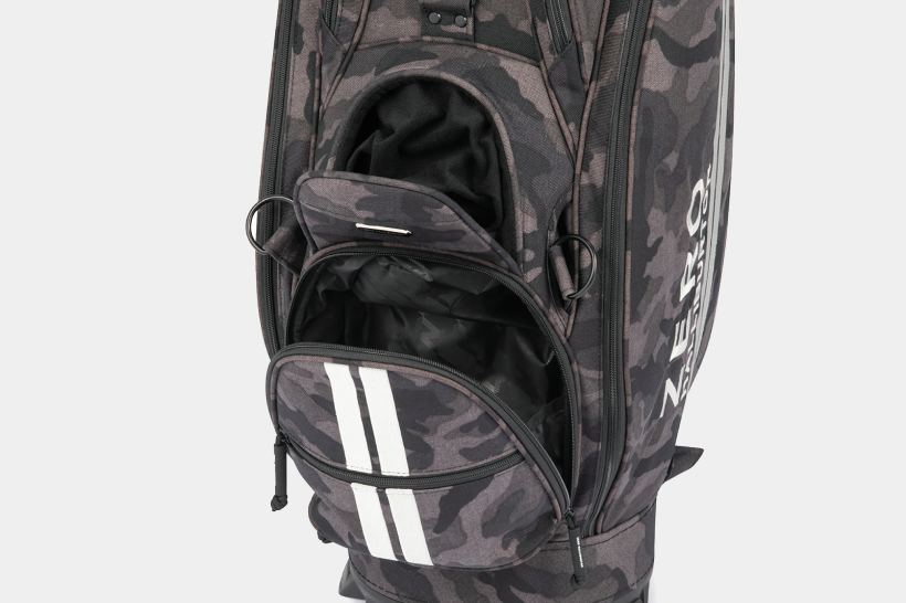 本体に摩擦や引き裂きに強いコーデュラナイロン1000dn を採用し、ゴルフシーンで存在感を放つタフで洗練されたカモフラージュ柄と、充実した機能性が魅力。