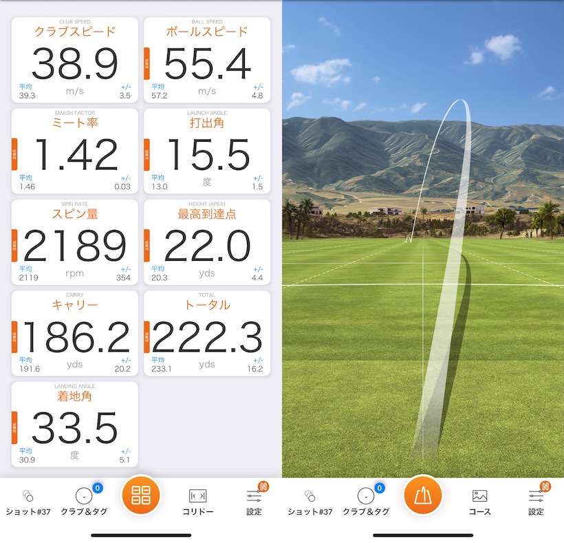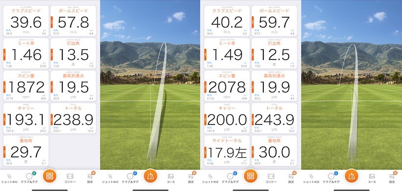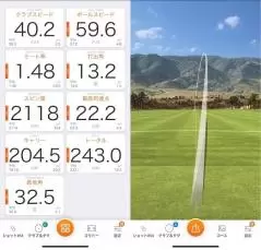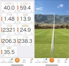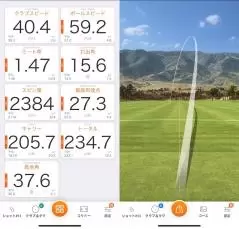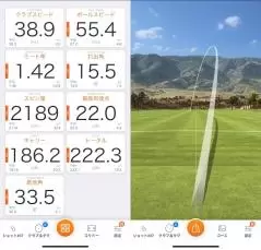 HS40m/sでキャリー206.3のトータル238.3。初速、打ち出し、スピン量も理想的だ。これはコースでも飛んでいる球だろう。