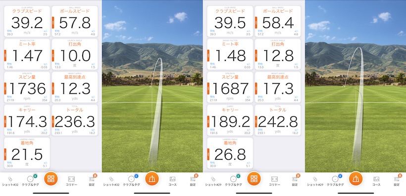 目に見えて変わったのは、スピン量。約2100で安定していた。また、キャリーが安定して200ヤードを超えていた。