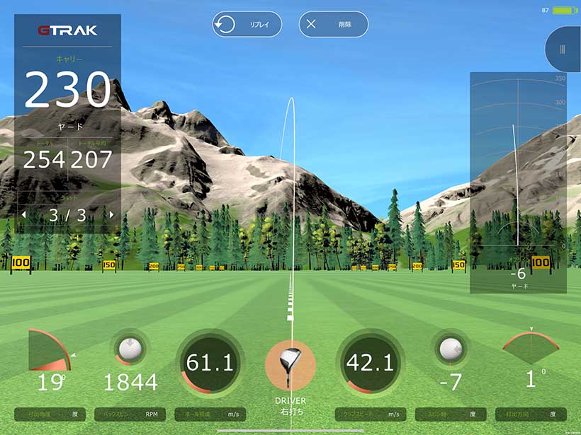 弾道的には少しだけ高めになりました。スピン量は少し少なめという感じで、ある程度安定したスピン量が入る感じ。つかまり性能もけっこう高く、落ち際に少しだけ左に行く軽いドローボールが打てました。つかまっている分だけ飛距離性能も高く、いつも使っている中調子のシャフトに比べると5ヤードほど飛んでいました。