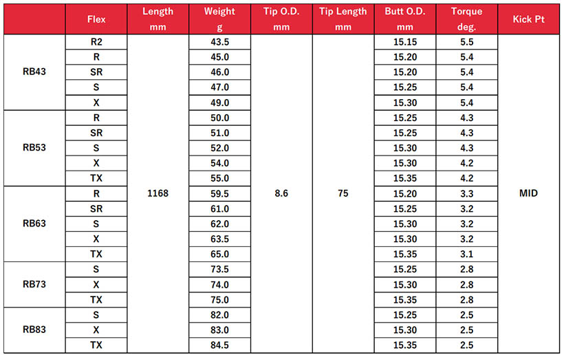 「Diamana RB」はDiamanaシリーズの第6世代モデルの第3弾として発売されました。いわゆる「赤マナ」の最新モデルということになります。