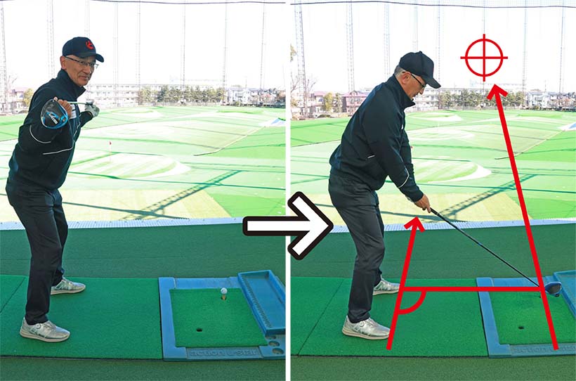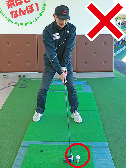 真っすぐ遠くに飛ばすにはイン・トゥ・インの軌道でボールをとらえるのが極意ですが、肩の向きでスイング軌道が決まってしまうといってもいいくらいですから、肩を常にスクエアにセットする。そのためにボールを基本の位置に置く。この2つを習慣づけてください。
