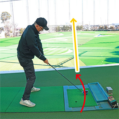 クラブがやや鋭角に下りてきて、アウトサイドインのカット軌道でとらえてしまう。体が早く開くため、インパクトでフェースが開く。こんな症状となっていることが考えられます。