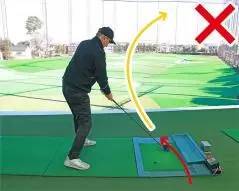 ボールを左に置きすぎるとアウトサイドインの軌道になりやすい