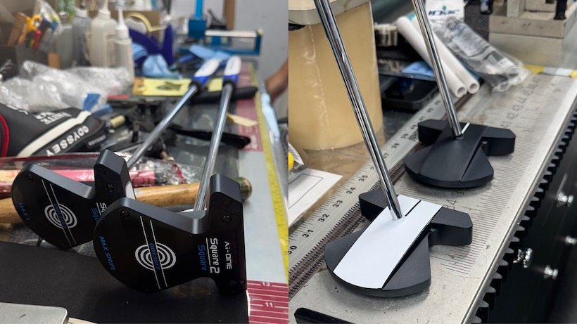 ところで、このオデッセイのニューパターの名前は? とソールを覗いてみると、「Ai-ONE Square 2 Square Max 1」(以下Max 1)とある。