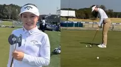 お次は河本結のコメント。『新感覚です。シャフトの先にフェースがある感覚が新しい。フェースがシャフトよりも前にあるので、ボールを真っすぐ押し出してくれます。チッパー的な感じで、パターがストロークを助けてくれる感覚があります』
