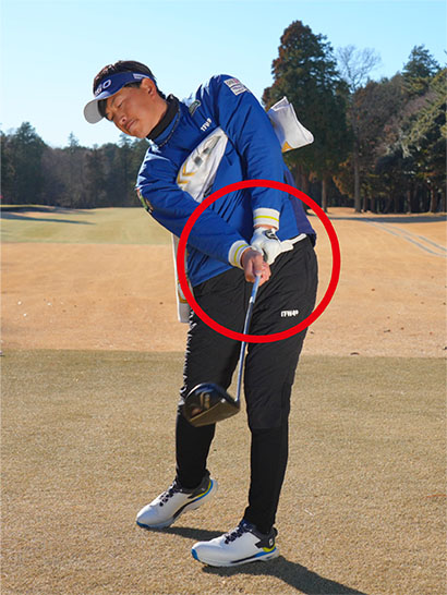 カラダの回転が止まって手打ちになりやすい人にもスイング矯正に役立つ