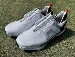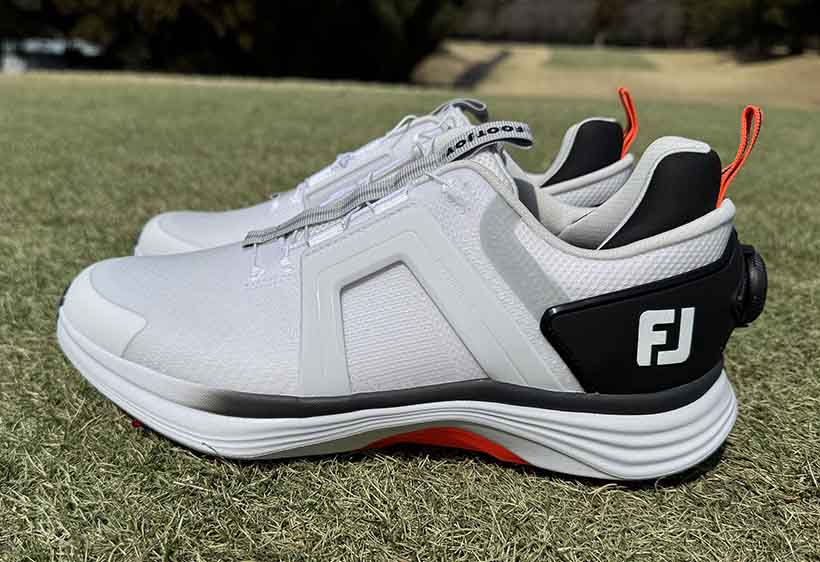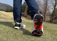 1ラウンドしっかりと「HYPERFLEX BOA」を履いてラウンドしましたが、ホールド感は高いもののソフトな履き心地でとてもラクでした。歩いていても気持ちがいいので、ラウンド後の疲れが本当に少ないです。そして安定感もあるのでスイングがしやすい。本当に快適性と安定感を高いレベルで実現しているシューズだな〜と思いました。デザイン的には少しカチッとしたシューズに見えますが、履いてみるとスニーカータイプのシューズのように歩きやすいところが良いですね。