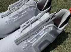 新しい「HYPERFLEX」は、ツアープロが求める高い安定性と、長時間履いても疲れにくい快適性を高次元で実現しています。これまでのモデルで高評価だったニットアッパーの柔軟性やクッション性を継承しつつ、スイング時の安定感をさらに向上させる改良が施されました。