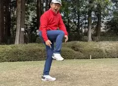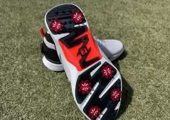 スイングをしてみると、さらにシューズとの一体感を感じます。しっかりと地面を蹴れるのでパワーが逃げるような感覚がありません。踏み込んで行ってもシューズが受け止めてくれるんですよね。