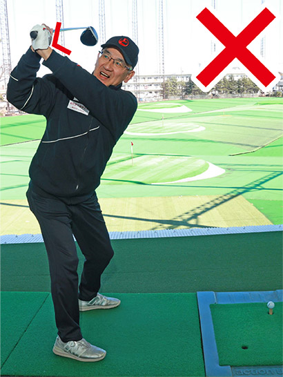 そのままトップへと上げれば左手首は甲側に折れませんし、ダウンスイングからインパクトにかけてもフェースが開かず、インパクトの正確性が劇的にアップします。