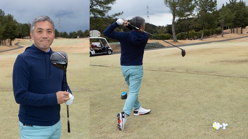 『加減して38m/sで振っていても40.5m/sとか41m/sといったHSが出てくれますね。これはシャフトですね。インパクト付近での加速感が強くて、シャフトの真ん中から先くらいが動いて、特に先端が極端にやわらかいです。たわみやすいのですが、暴れる感じはなく、コントロールできる範囲のたわみ方なので振りやすいです。球を拾って持ち上げてくれる動きと、球を強く打ち出す感じがバランス良く共存しています』(石井)