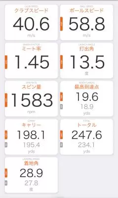ロフト10.5度/HS38m/sの参考値