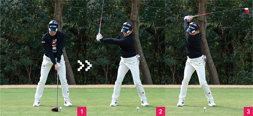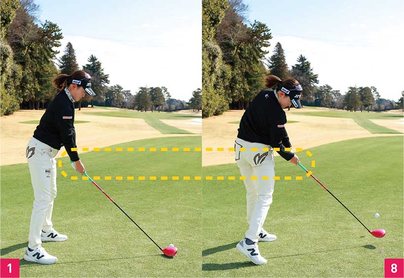 一度、手元を下げることでインパクトとアドレスで手元が同じところに!!