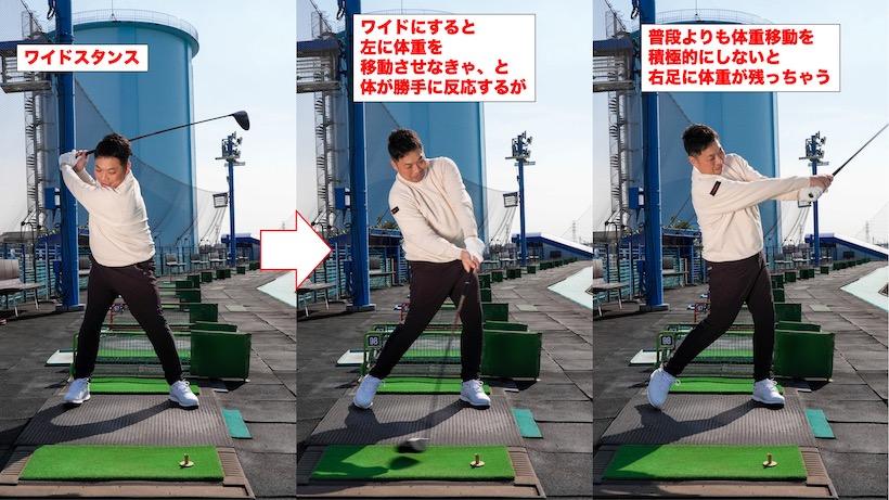 ゴルフサプリ それはよくわかりました。それから、ワイドスタンスにして体重移動を積極的にする、とてもシンプルなので誰でも試せそうですよね。