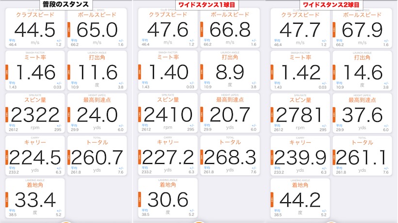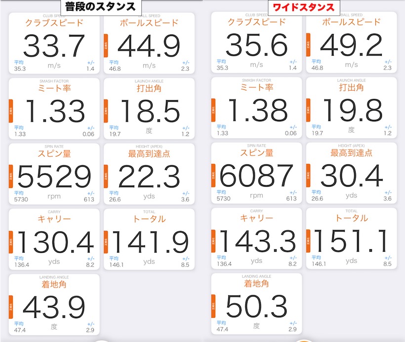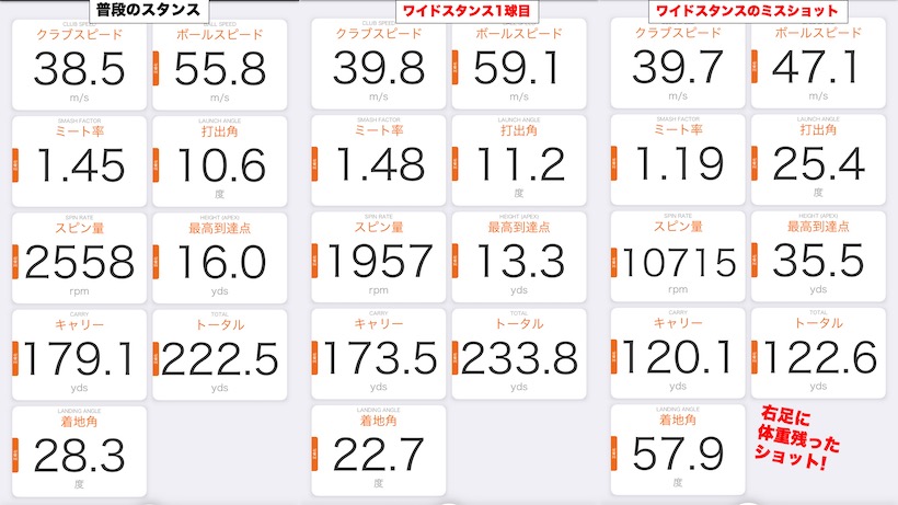 ゴルフサプリ さて、ドライバー以外でワイドスタンスにしたらどうなるのか、7番(33度)アイアンで試してみましたが、良い結果が得られましたね。